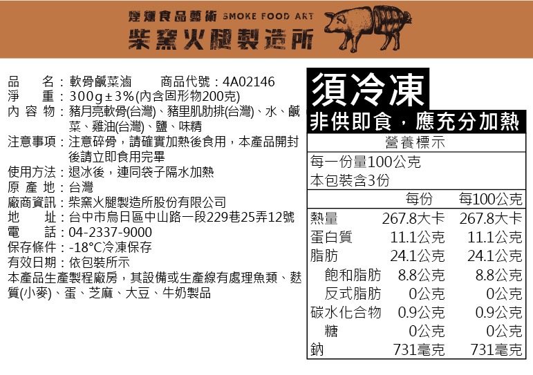 4A02146 軟骨鹹菜滷 300g±3%(內含固形物200g)