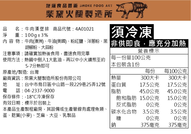 4A01021 牛肉漢堡排 100g(±3%)